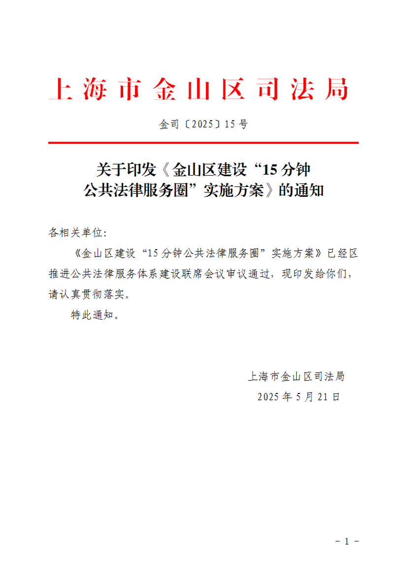 金山區(qū)建設(shè)“15分鐘公共法律服務(wù)圈”實施方案