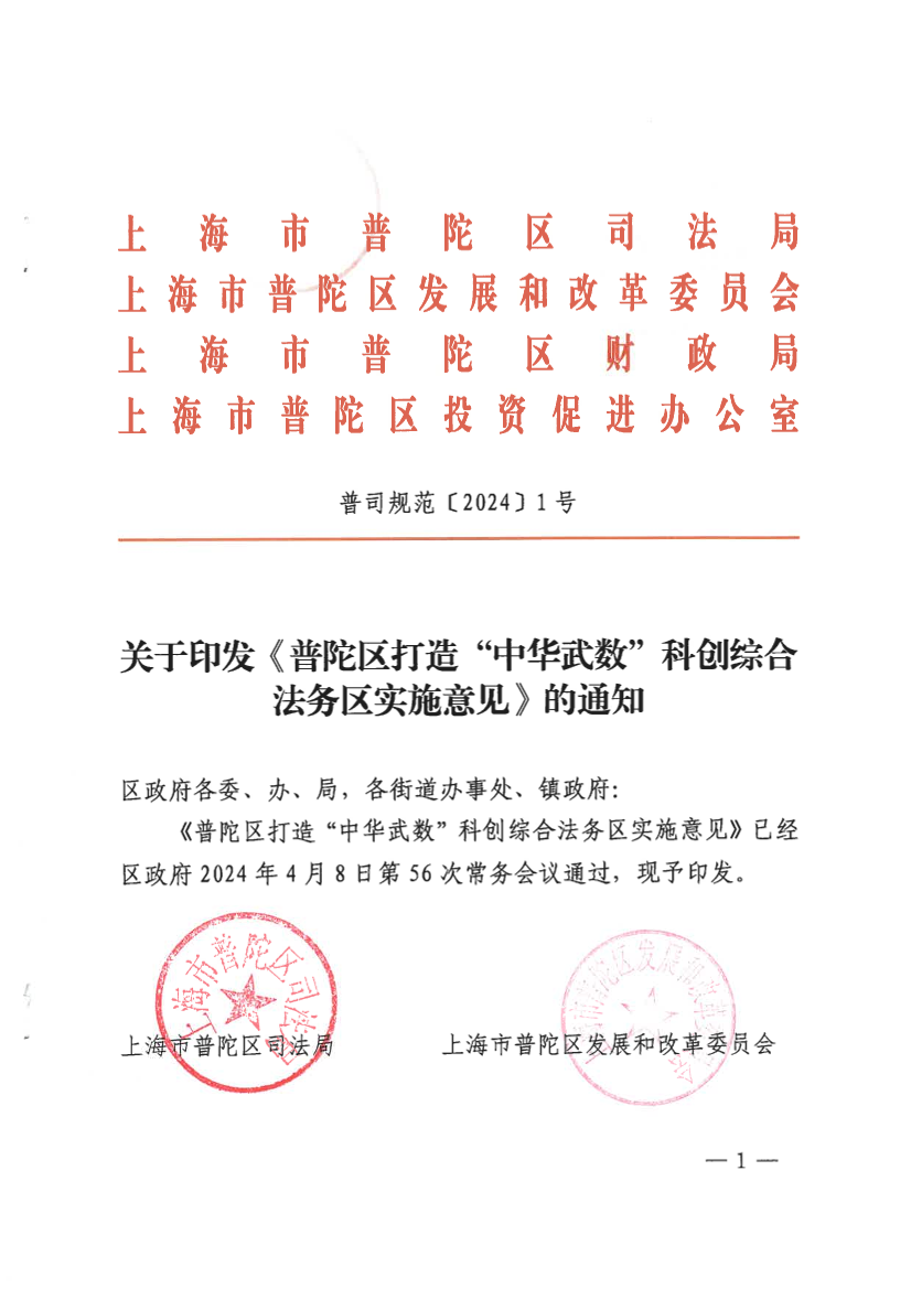 普陀區(qū)打造“中華武數(shù)”科創(chuàng)綜合法務(wù)區(qū)實施意見