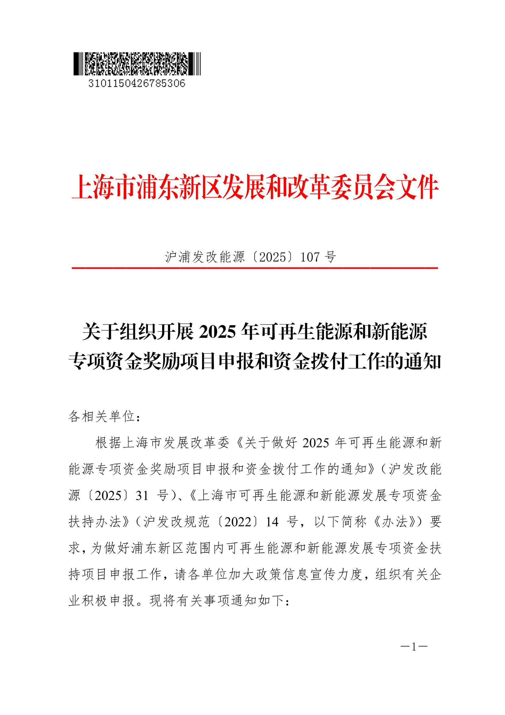 ??根據(jù)上海市發(fā)展改革委《關(guān)于做好2025年可再生能源和新能源專項資金獎勵項目申報和資金撥付工作的通知》(滬發(fā)改能源〔2025〕31號)、《上海市可再生能源和新能源發(fā)展專項資金扶持辦法》(滬發(fā)改規(guī)范〔2022〕14號,以下簡稱《辦法》)要求,為做好浦東新區(qū)范圍內(nèi)可再生能源和新能源發(fā)展專項資金扶持項目申報工作,請各單位加大政策信息宣傳力度,組織有關(guān)企業(yè)積極申報?,F(xiàn)將有關(guān)事項通知如下: