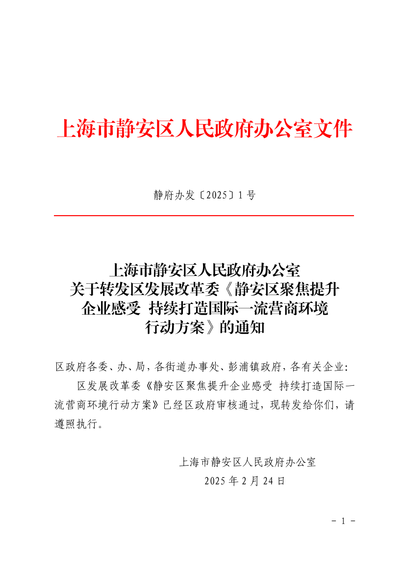 ??區(qū)發(fā)展改革委《靜安區(qū)聚焦提升企業(yè)感受 持續(xù)打造國(guó)際一流營(yíng)商環(huán)境行動(dòng)方案》已經(jīng)區(qū)政府審核通過(guò),現(xiàn)轉(zhuǎn)發(fā)給你們,請(qǐng)遵照?qǐng)?zhí)行。