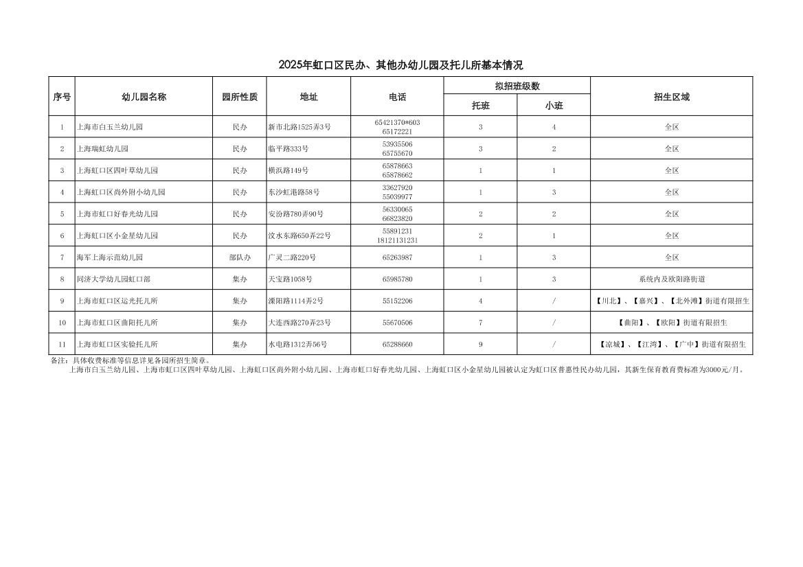 2025年虹口區(qū)民辦、其他辦幼兒園及托兒所基本情況