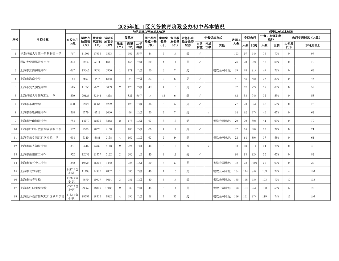 2025年虹口區(qū)義務(wù)教育階段公辦初中基本情況