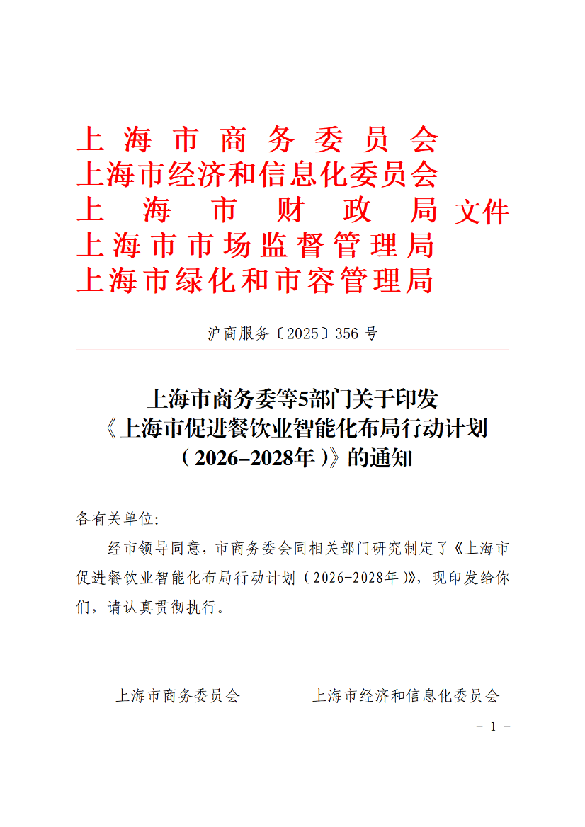 ??經(jīng)市領(lǐng)導(dǎo)同意,市商務(wù)委會同相關(guān)部門研究制定了《上海市促進(jìn)餐飲業(yè)智能化布局行動計劃(2026-2028年)》,現(xiàn)印發(fā)給你們,請認(rèn)真貫徹執(zhí)行。