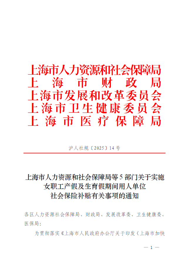 ??為貫徹落實《上海市人民政府辦公廳關(guān)于印發(fā)〈上海市加快完善生育支持政策體系推動建設生育友好型社會的若干措施〉的通知》(滬府辦發(fā)〔2024〕24號),探索建立用人單位女職工生育成本共擔機制,促進女性高質(zhì)量充分就業(yè)。經(jīng)市政府同意,決定對符合條件的用人單位在女職工產(chǎn)假及生育假期間實施社會保險補貼政策。現(xiàn)將有關(guān)事項通知如下: