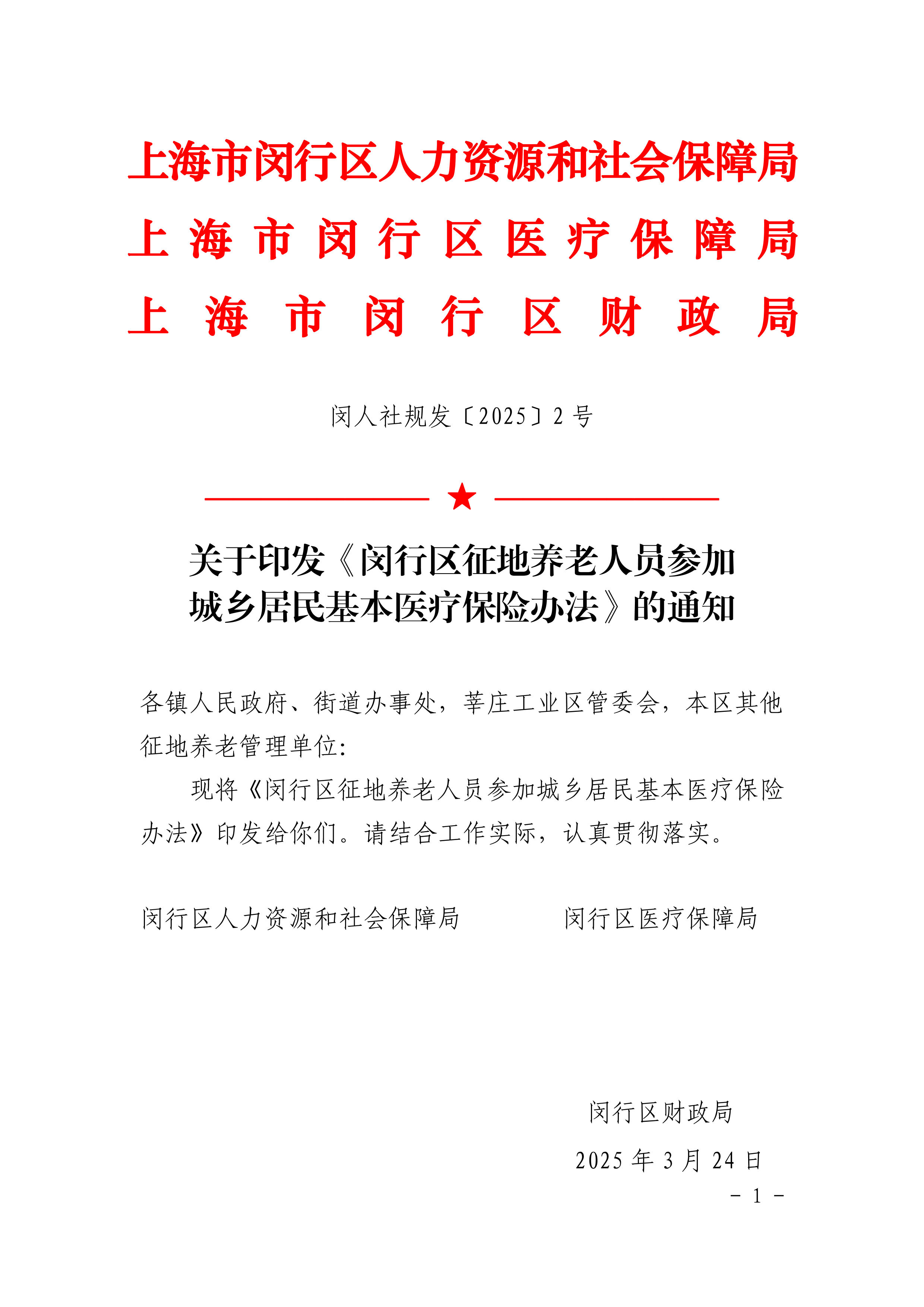 ??現(xiàn)將《閔行區(qū)征地養(yǎng)老人員參加城鄉(xiāng)居民基本醫(yī)療保險辦法》印發(fā)給你們。請結(jié)合工作實際,認真貫徹落實。