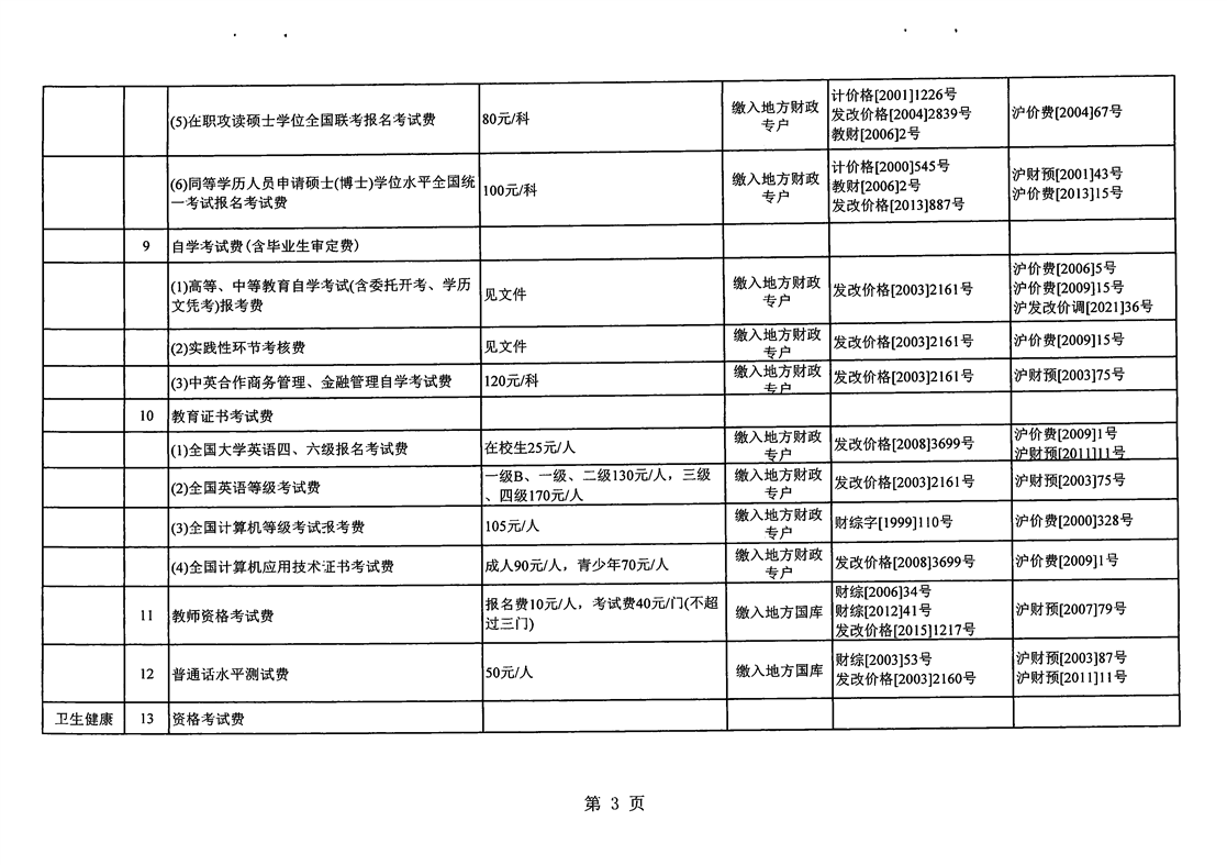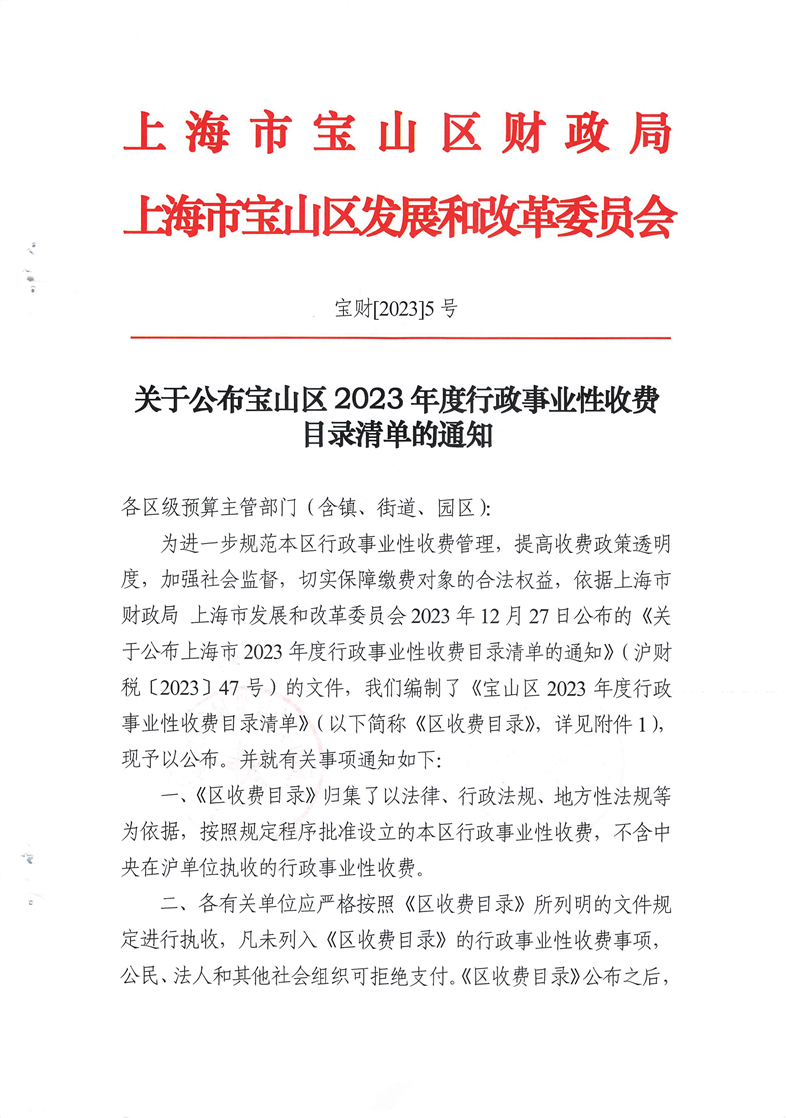 關(guān)于公布寶山區(qū)2023年度行政事業(yè)性收費(fèi)目錄清單的通知