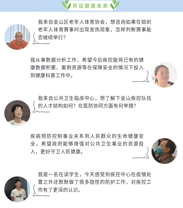 ??在座談會(huì)上,市民代表們圍繞疫情防控、醫(yī)防融合、健康科普等話題踴躍提問(wèn)、積極獻(xiàn)策,中心(所)分管領(lǐng)導(dǎo)一一做出細(xì)致解答和回應(yīng)?,F(xiàn)場(chǎng)氣氛熱烈,面對(duì)面溝通進(jìn)一步增強(qiáng)了公眾對(duì)公共衛(wèi)生工作的理解與信任。
