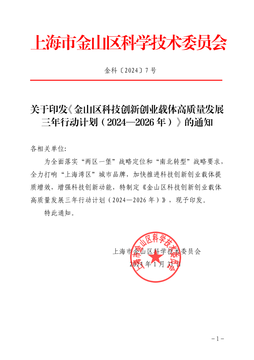 金山區(qū)科技創(chuàng)新創(chuàng)業(yè)載體高質(zhì)量發(fā)展三年行動計劃(2024—2026年)
