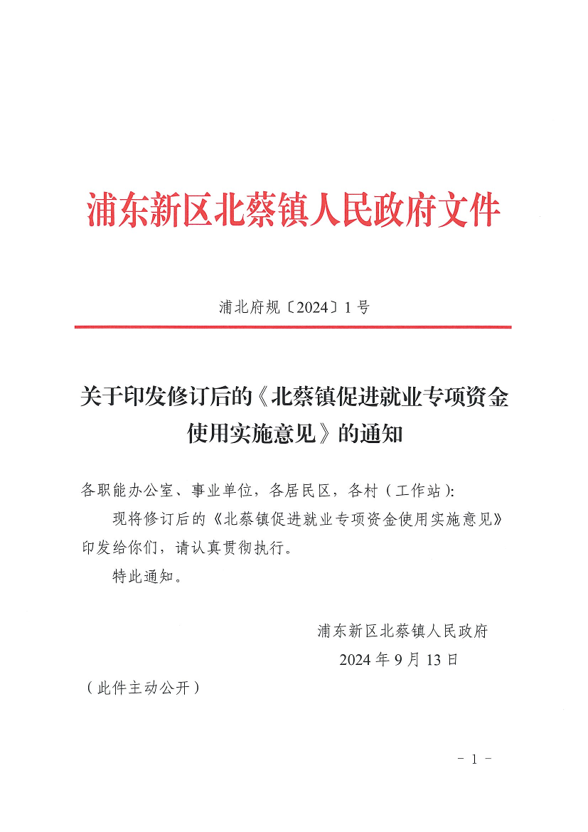 關(guān)于印發(fā)修訂后的《北蔡鎮(zhèn)促進(jìn)就業(yè)專項(xiàng)資金使用實(shí)施意見》的通知