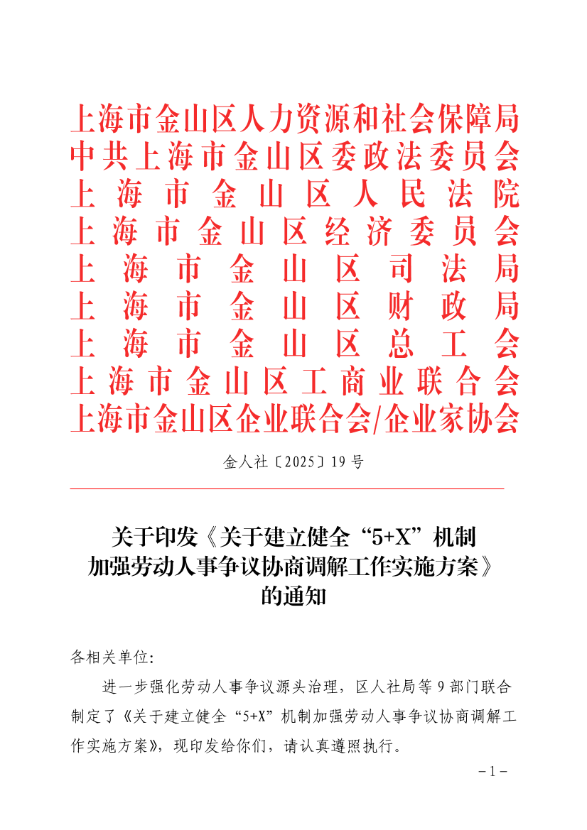 ??進一步強化勞動人事爭議源頭治理, 區(qū)人社局等9部門聯(lián)合制定了《關于建立健全“5+X”機制加強勞動人事爭議協(xié)商調解工作實施方案》,現(xiàn)印發(fā)給你們,請認真遵照執(zhí)行。