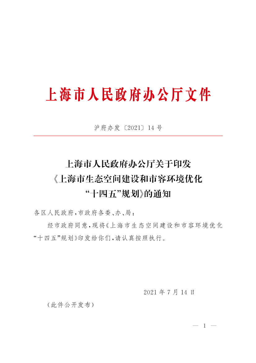 上海市人民政府辦公廳關(guān)于印發(fā)《上海市生態(tài)空間建設(shè)和市容環(huán)境優(yōu)化“十四五”規(guī)劃》的通知