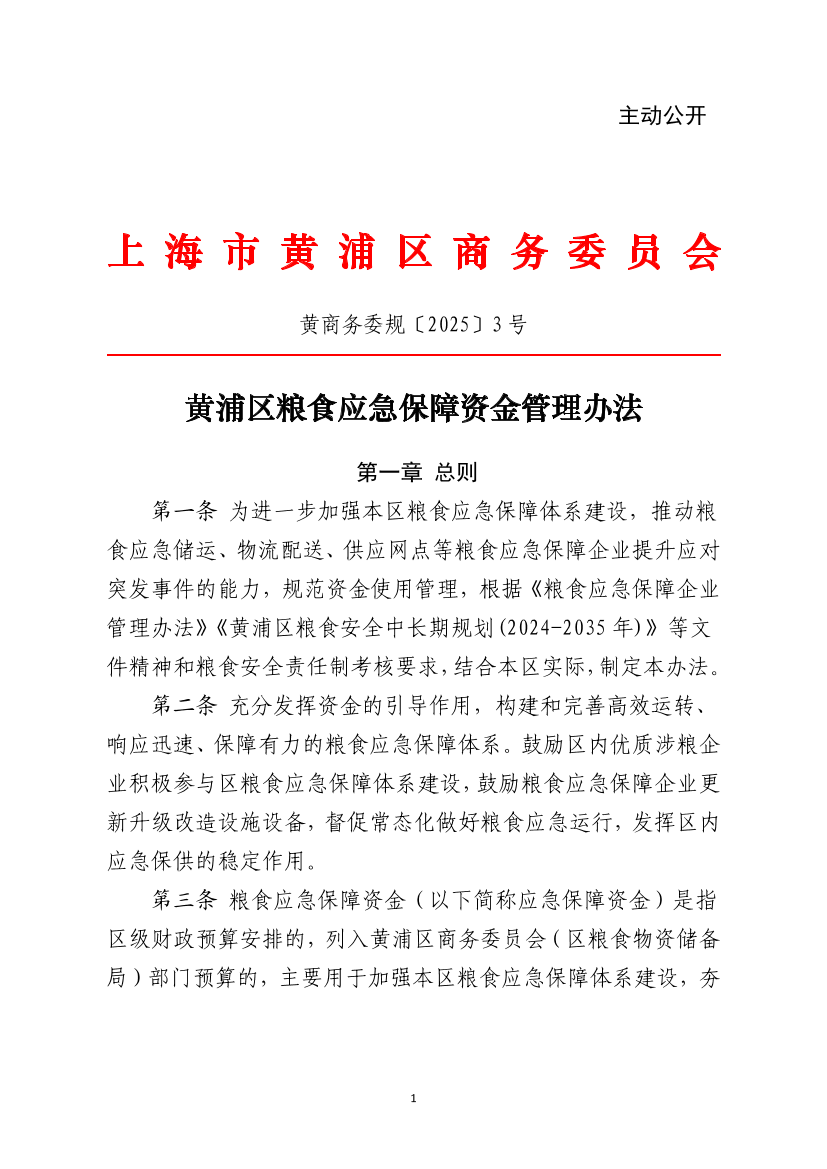 黃浦區(qū)糧食應(yīng)急保障資金管理辦法
