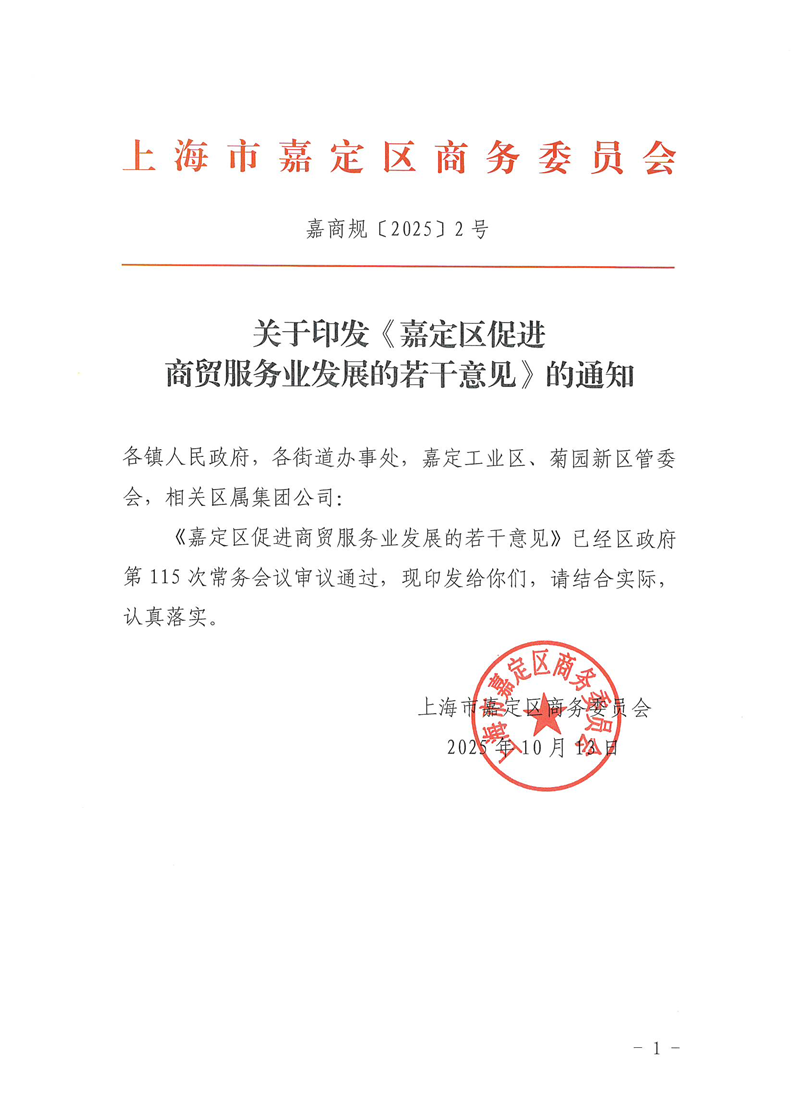 關(guān)于印發(fā)《嘉定區(qū)促進(jìn)商貿(mào)服務(wù)業(yè)發(fā)展的若干意見》的通知
