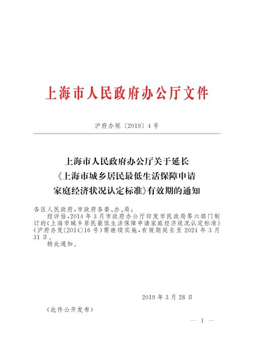 上海市人民政府辦公廳關(guān)于延長《上海市城鄉(xiāng)居民最低生活保障申請家庭經(jīng)濟(jì)狀況認(rèn)定標(biāo)準(zhǔn)》有效期的通知