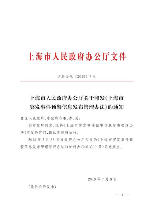 經(jīng)市政府同意,現(xiàn)將《上海市突發(fā)事件預(yù)警信息發(fā)布管理辦法》印發(fā)給你們,請(qǐng)認(rèn)真按照?qǐng)?zhí)行。
