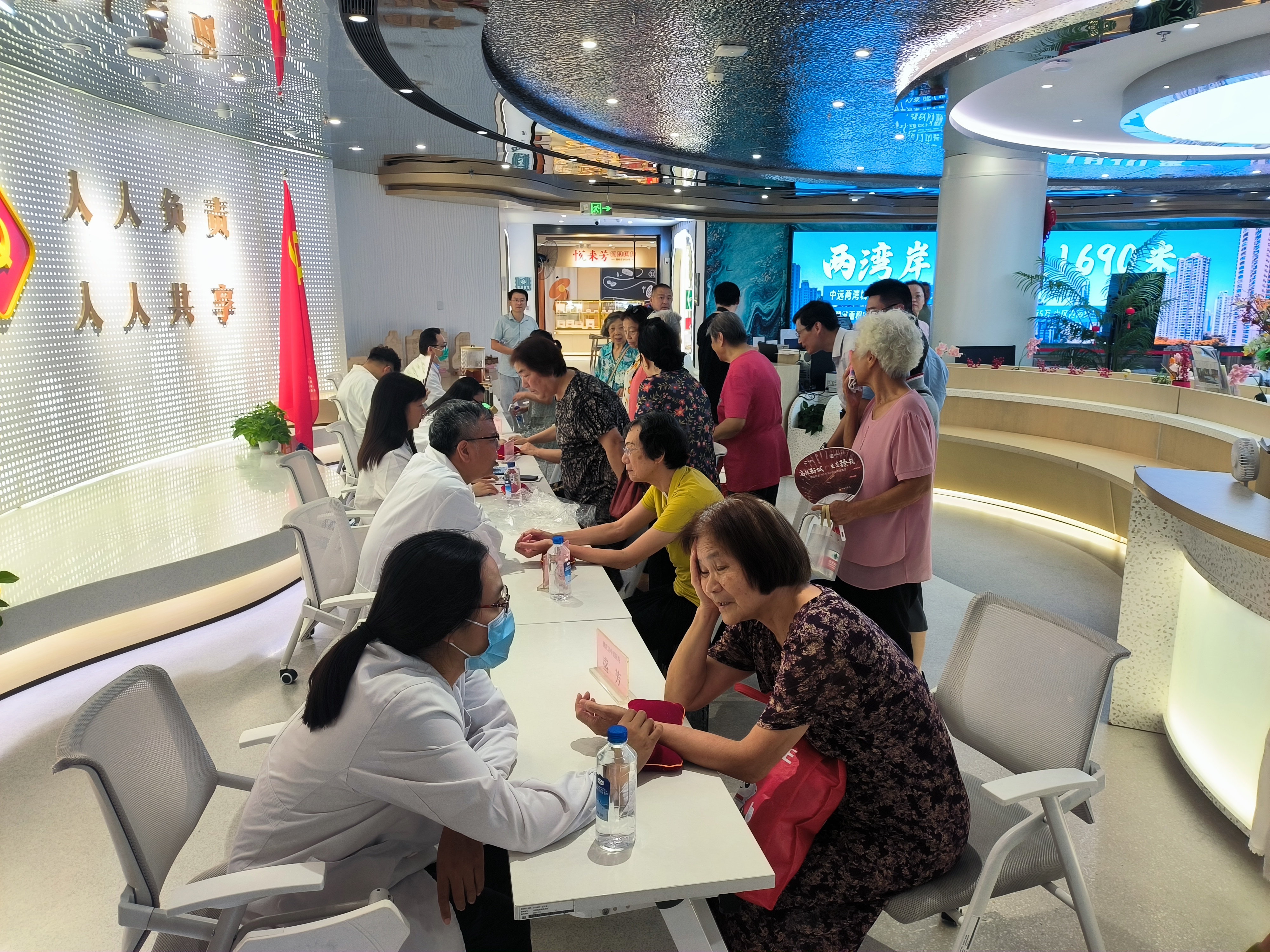 1690黨群服務中心和中遠兩灣城第二社區(qū)衛(wèi)生服務站內(nèi)設(shè)有四個多維體驗區(qū),供居民實地參觀和互動體驗?!耙暯纭か@典”板塊依托智能四診儀實現(xiàn)“望診科技化”,市民能夠通過AI舌象分析生成舌診報告,結(jié)合傳統(tǒng)中醫(yī)理論解讀體質(zhì)特征,同步獲取個性化調(diào)理方案。“聞香·識藥”板塊則進行中藥氣味盲盒挑戰(zhàn)和本草芳香療法香囊DIY,讓居民通過嗅覺感受中醫(yī)、認識中醫(yī),感悟“聞香治病”的傳統(tǒng)智慧?!捌肺丁ゐB(yǎng)生”板塊以特色茶飲等為載體,結(jié)合體質(zhì)辨識儀數(shù)據(jù)定制養(yǎng)生方案,為居民介紹“四氣五味”食養(yǎng)指南。“聆訓·明理”板塊則進行中醫(yī)專家健康咨詢、本草植物拓染等活動,推動中醫(yī)藥文化代際傳承。