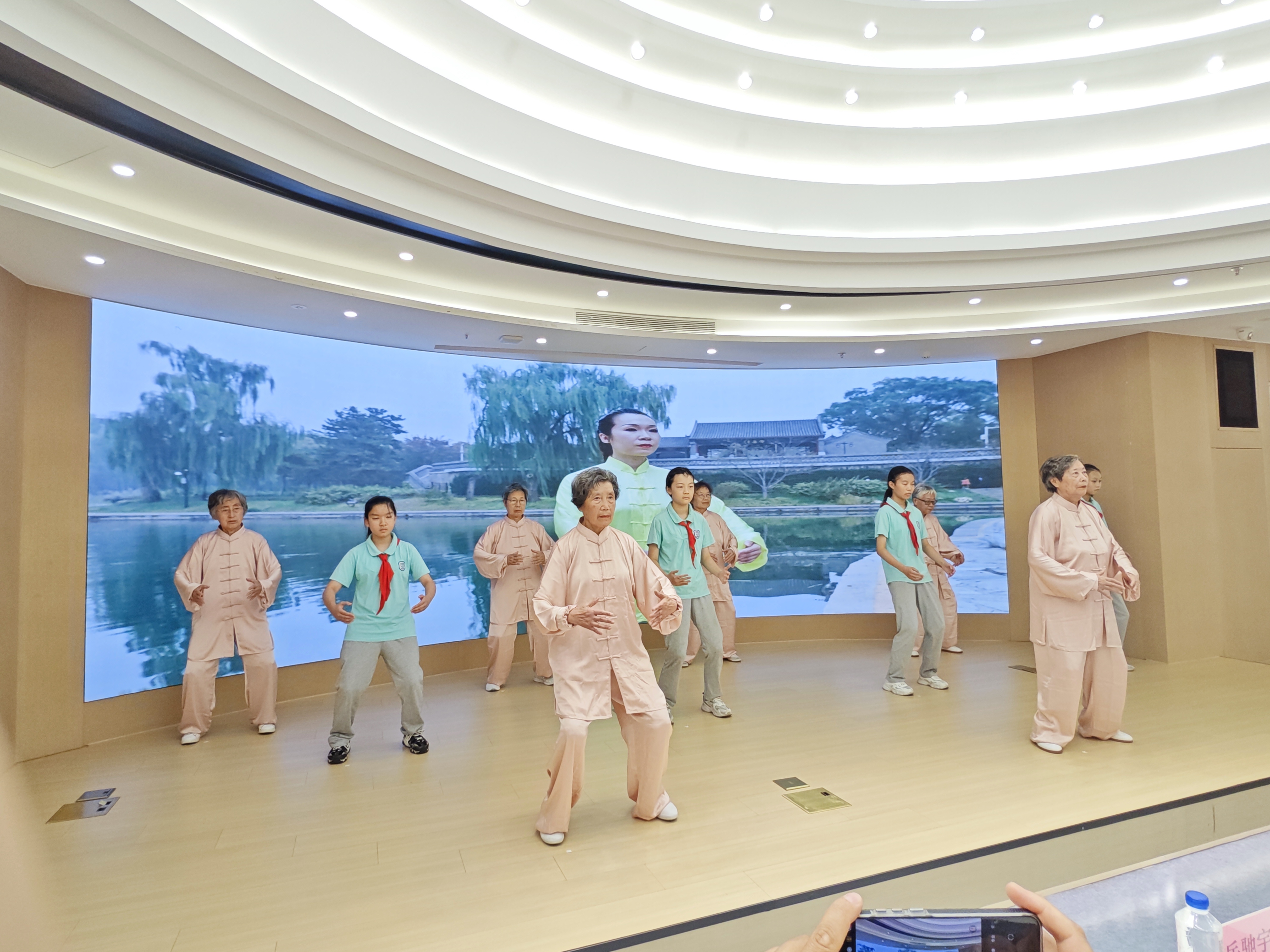 活動特邀上海市名中醫(yī)何立群工作室團隊專家圍繞“從九個生活細節(jié)切入,傳授實用養(yǎng)生秘訣”主題,開展現(xiàn)場授課和云端直播,同時在大廳進行中醫(yī)專家健康咨詢,為居民提供個性化的中醫(yī)藥健康服務。現(xiàn)場還邀請了社區(qū)居民代表及銅川學校學生代表進行八段錦功法展示,充分展現(xiàn)了傳統(tǒng)功法的獨特魅力與現(xiàn)代活力。