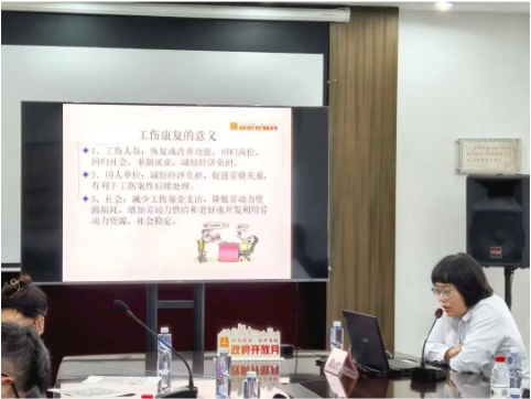 座談會上,普陀區(qū)康復醫(yī)院向受邀代表介紹未來普陀區(qū)康復醫(yī)院科室設(shè)置、醫(yī)療人員配備規(guī)劃及特色技術(shù)。同時,從醫(yī)學專業(yè)角度向受邀代表介紹工傷康復的重要性和必要性。區(qū)人社局向受邀代表介紹業(yè)務辦理依據(jù)、申請條件、申請流程等勞動能力鑒定及住院工傷康復相關(guān)政策內(nèi)容,認真聽取受邀代表提出的問題及意見建議,并一一作出回應,獲得受邀代表的一致好評。