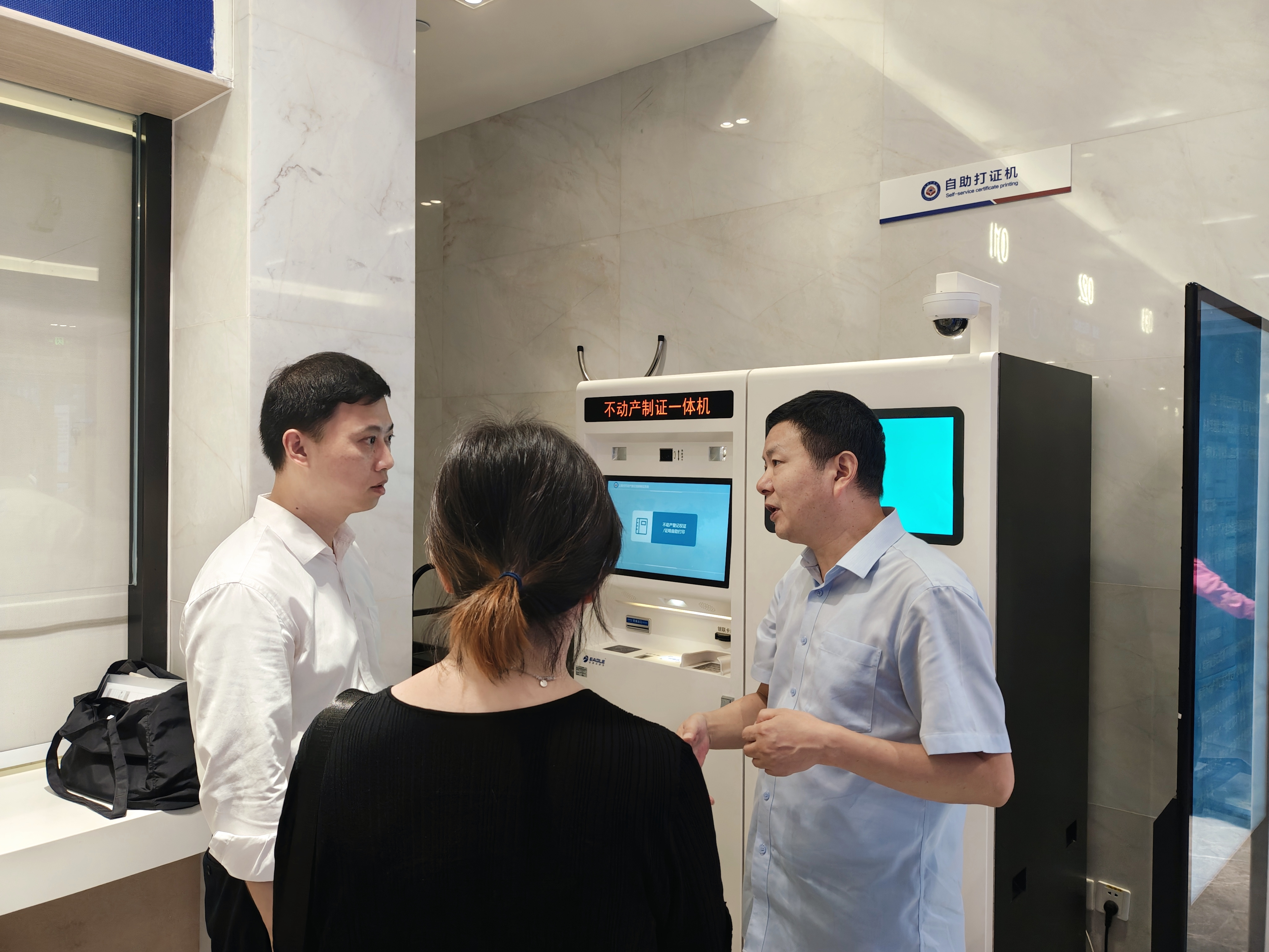 活動當天,我局帶領公眾代表參觀了一樓確權交易大廳,詳細介紹了各功能區(qū)的設置和用途,重點展示了“一件事”專窗、網(wǎng)辦幫辦區(qū)以及長三角不動產(chǎn)登記“跨省通辦”專窗等窗口。公眾代表在實地走訪中對大廳完善的功能布局和貼心的便民舉措表示肯定,并表示通過此次參觀對不動產(chǎn)登記服務有了更全面的了解。