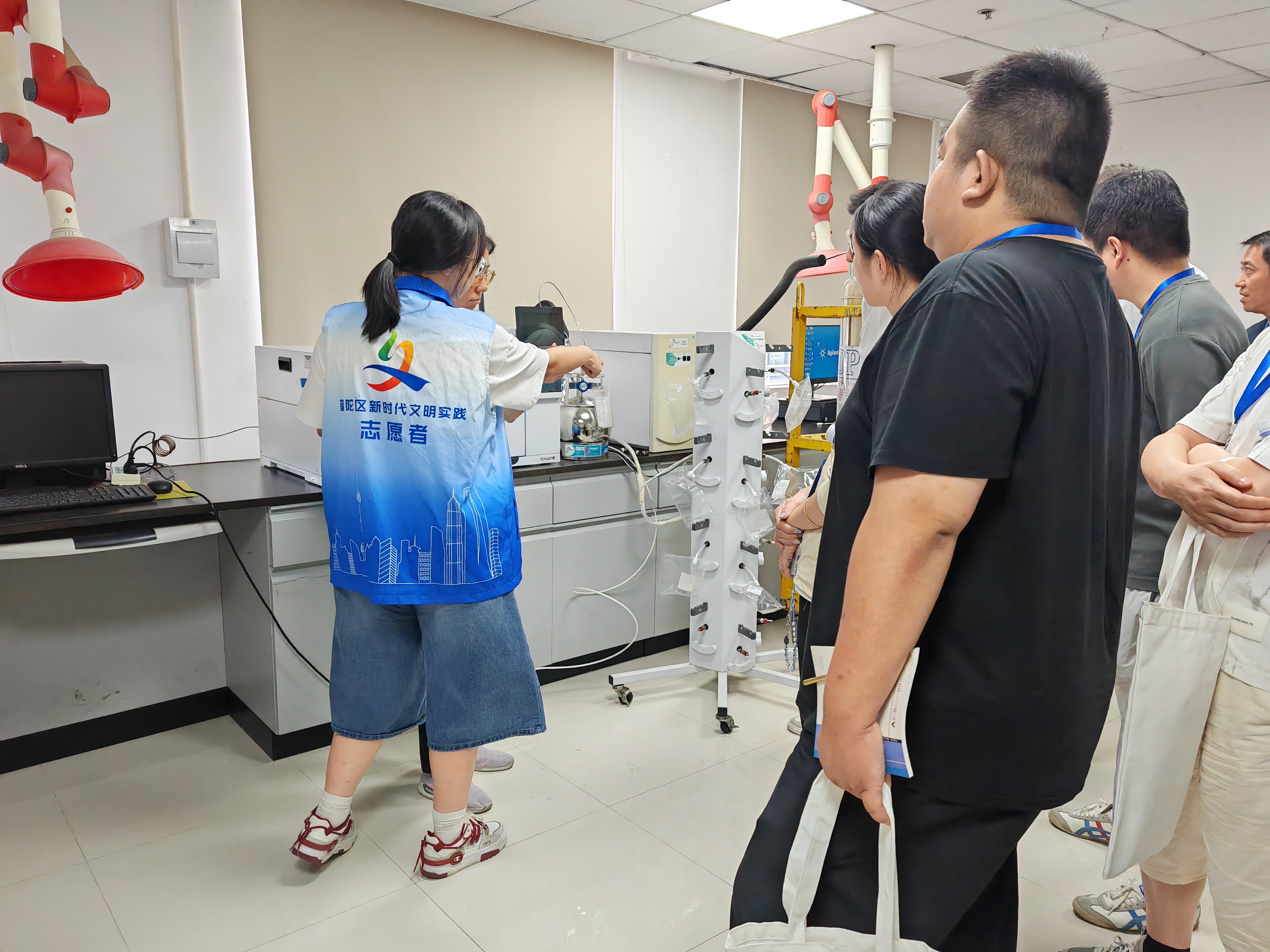 在普陀區(qū)環(huán)境監(jiān)測實驗室,前處理間、采樣器、分光光度計、PH計、色譜質(zhì)譜儀等專業(yè)設(shè)施設(shè)備依次呈現(xiàn),志愿者現(xiàn)場演示了VOC濃度分析的全流程——從采樣到分析、數(shù)據(jù)解讀,原本“高大上”的監(jiān)測技術(shù)變得清晰可感。