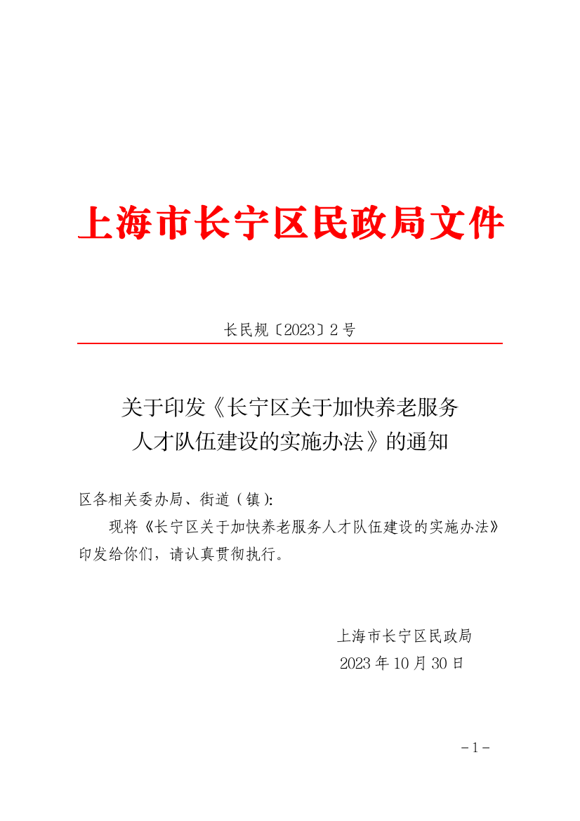 長寧區(qū)關于加快養(yǎng)老服務人才隊伍建設的實施辦法