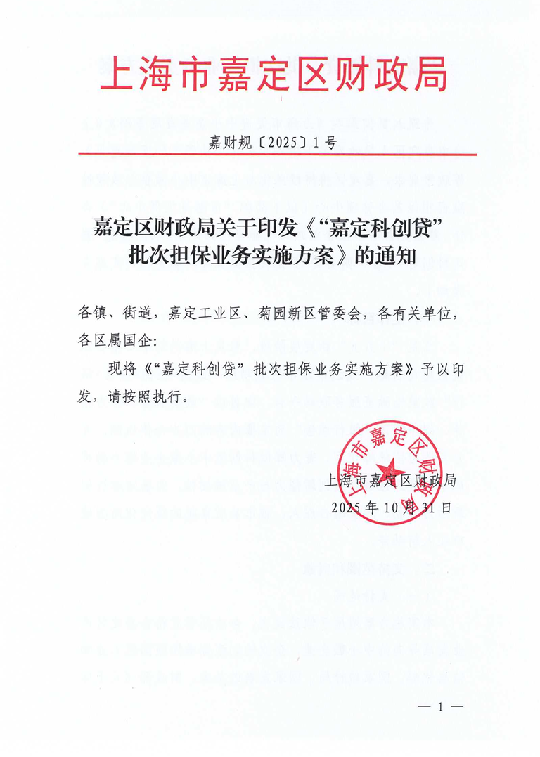 ??現(xiàn)將《“嘉定科創(chuàng)貸”批次擔(dān)保業(yè)務(wù)實(shí)施方案》予以印發(fā),請(qǐng)按照?qǐng)?zhí)行。