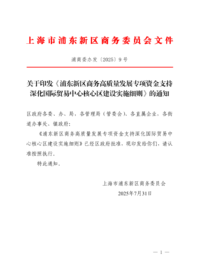 浦東新區(qū)商務(wù)高質(zhì)量發(fā)展專項資金支持深化國際貿(mào)易中心核心區(qū)建設(shè)實施細則