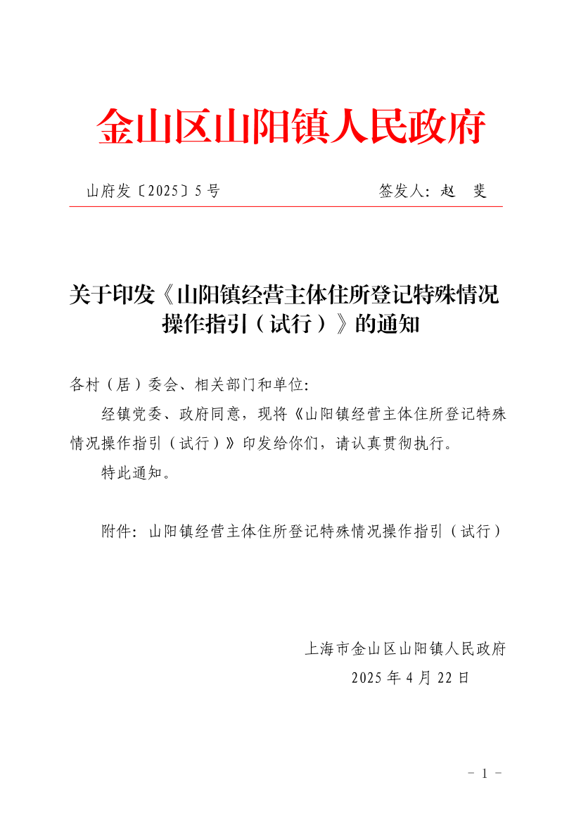 關(guān)于印發(fā)《山陽鎮(zhèn)經(jīng)營主體住所登記特殊情況操作指引(試行)》的通知