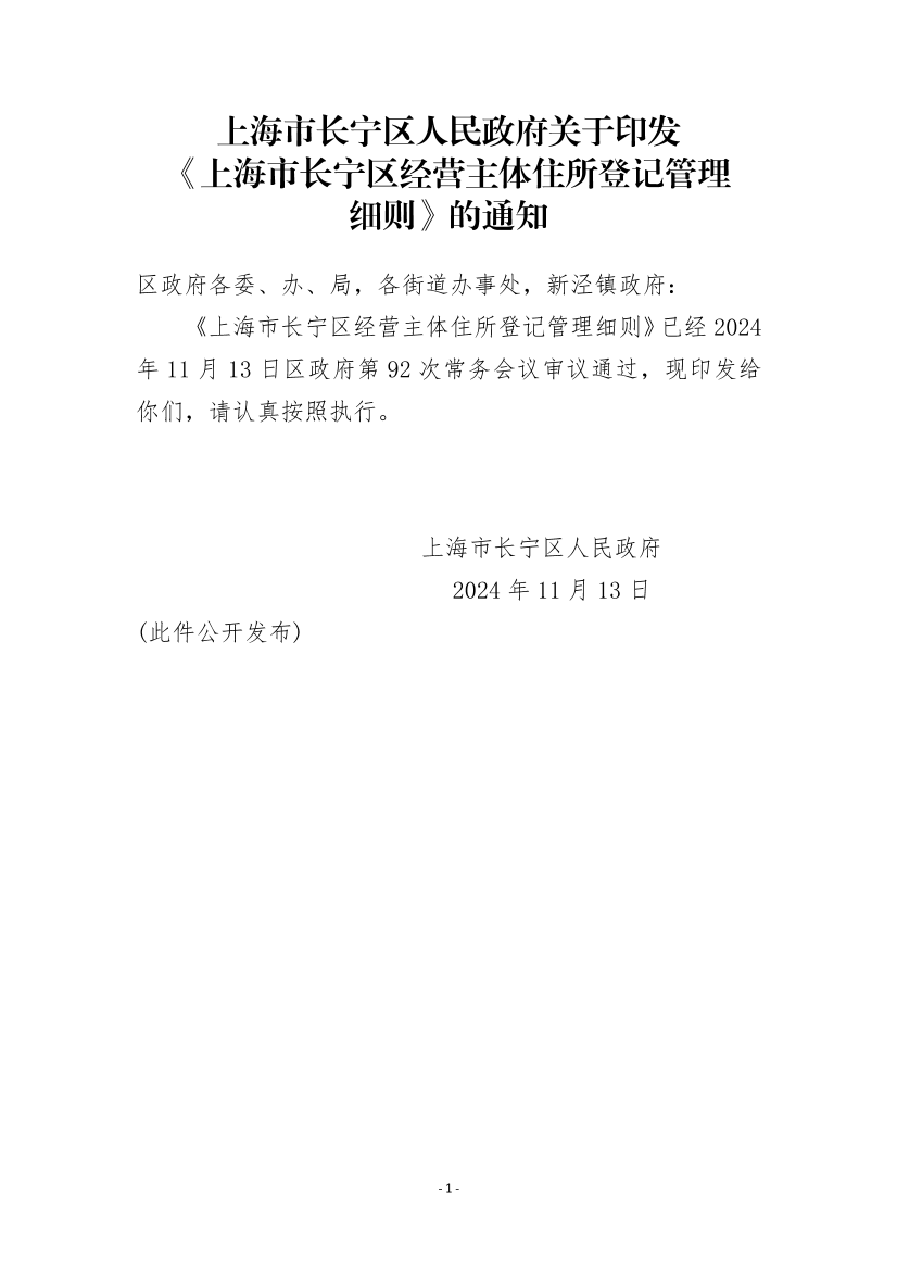 上海市長寧區(qū)人民政府關(guān)于印發(fā)《上海市長寧區(qū)經(jīng)營主體住所登記管理細則》的通知