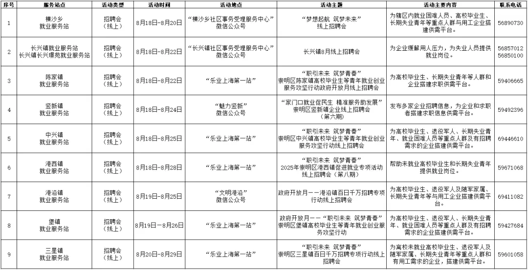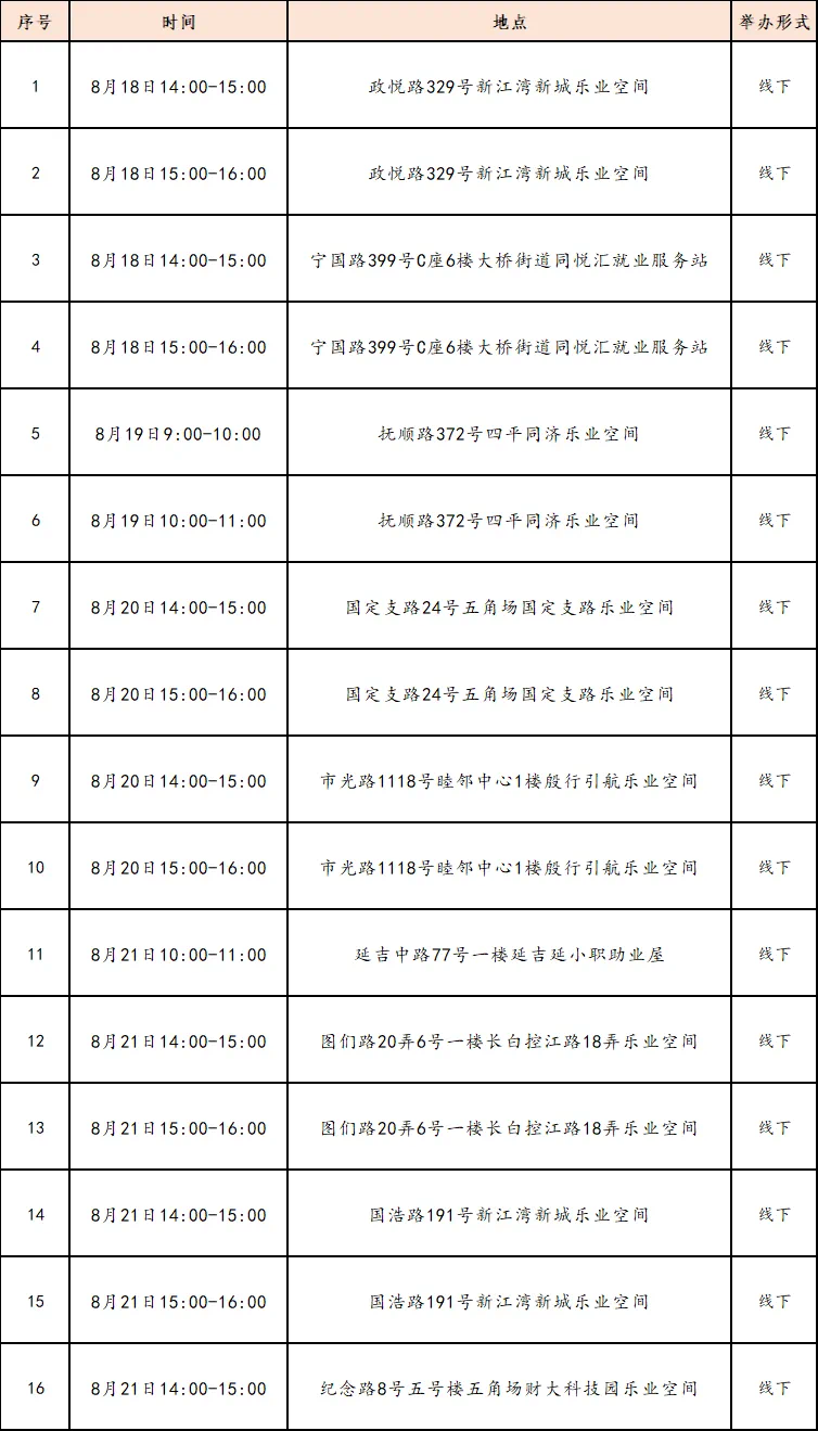 ??“15分鐘就業(yè)服務(wù)圈”社區(qū)就業(yè)服務(wù)站點建設(shè)市政府實事項目作為人社部門常態(tài)化政府開放活動之一,我們將持續(xù)發(fā)布精彩服務(wù)內(nèi)容,今天為大家?guī)睃S浦區(qū)、靜安區(qū)、楊浦區(qū)、閔行區(qū)、崇明區(qū)、長寧區(qū)、嘉定區(qū)、青浦區(qū)近期就業(yè)活動安排!