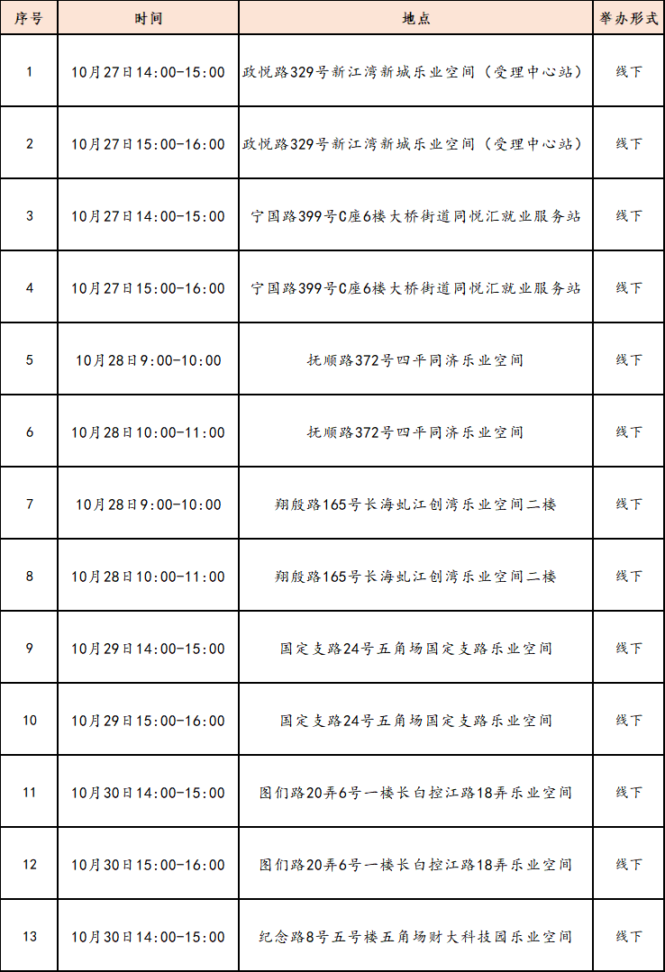 ??“15分鐘就業(yè)服務(wù)圈”社區(qū)就業(yè)服務(wù)站點(diǎn)建設(shè)市政府實(shí)事項(xiàng)目作為人社部門常態(tài)化政府開放活動(dòng)之一,我們將持續(xù)發(fā)布精彩服務(wù)內(nèi)容,今天為大家?guī)黹L寧區(qū)、楊浦區(qū)、閔行區(qū)、青浦區(qū)、崇明區(qū)、黃浦區(qū)、靜安區(qū)近期就業(yè)活動(dòng)安排!