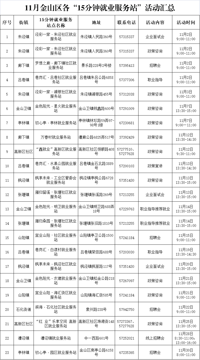 ??“15分鐘就業(yè)服務(wù)圈”社區(qū)就業(yè)服務(wù)站點(diǎn)建設(shè)市政府實(shí)事項(xiàng)目作為人社部門常態(tài)化政府開放活動(dòng)之一,我們將持續(xù)發(fā)布精彩服務(wù)內(nèi)容,今天為大家?guī)睃S浦區(qū)、長寧區(qū)、嘉定區(qū)、金山區(qū)、青浦區(qū)、崇明區(qū)、楊浦區(qū)、閔行區(qū)、寶山區(qū)近期就業(yè)活動(dòng)安排!