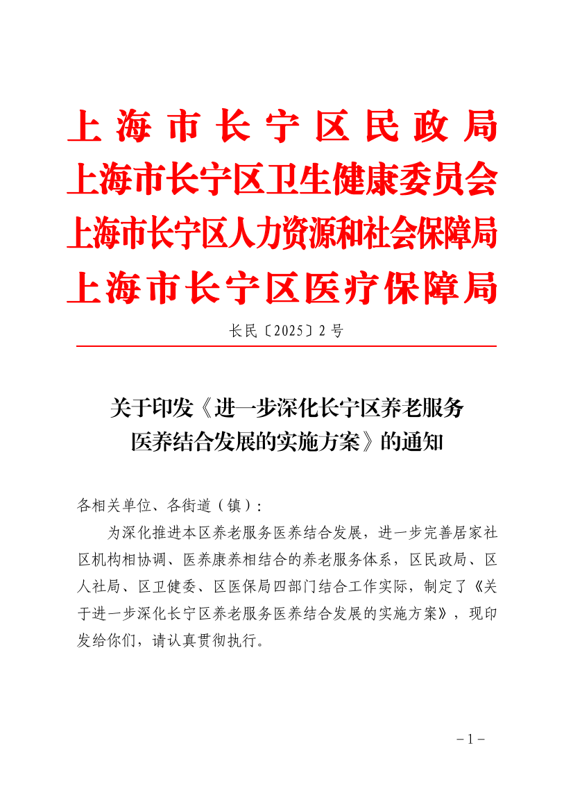 關(guān)于進一步深化長寧區(qū)養(yǎng)老服務(wù)醫(yī)養(yǎng)結(jié)合發(fā)展的實施方案