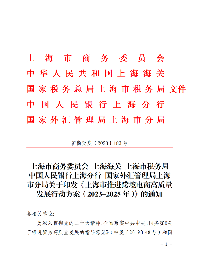 上海市推進跨境電商高質(zhì)量發(fā)展行動方案(2023-2025年)