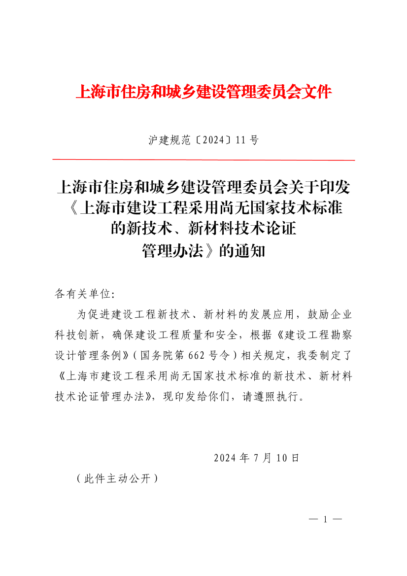 上海市住房和城鄉(xiāng)建設(shè)管理委員會(huì)關(guān)于印發(fā)《上海市建設(shè)工程采用尚無國家技術(shù)標(biāo)準(zhǔn)的新技術(shù)、新材料技術(shù)論證管理辦法》的通知