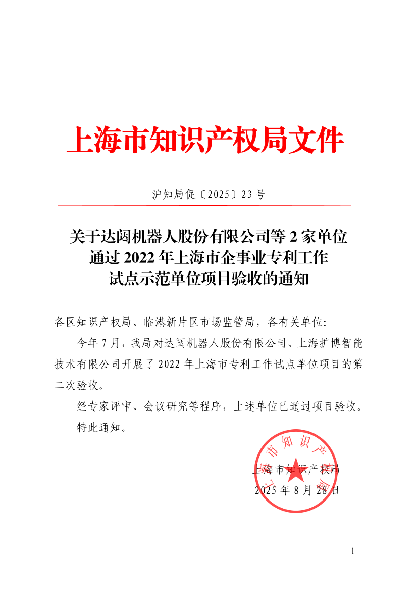 ??今年7月,我局對達(dá)闥機(jī)器人股份有限公司、上海擴(kuò)博智能技術(shù)有限公司開展了2022年上海市專利工作試點(diǎn)單位項(xiàng)目的第二次驗(yàn)收。
