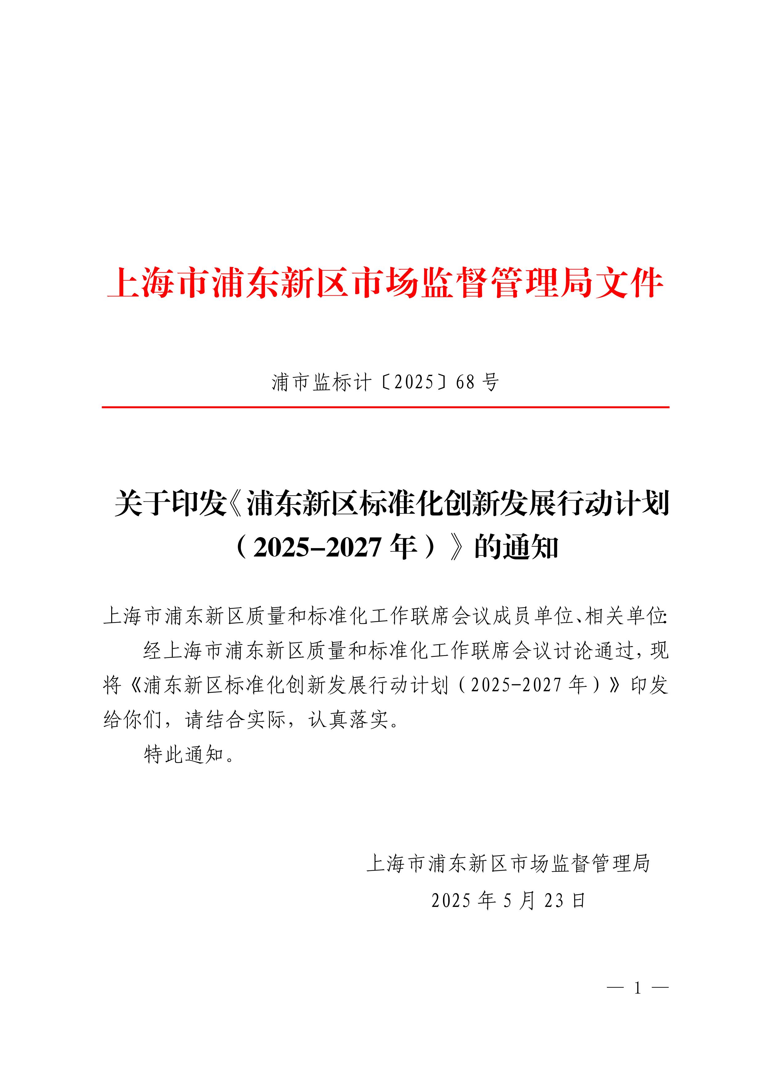 關(guān)于印發(fā)《浦東新區(qū)標(biāo)準(zhǔn)化創(chuàng)新發(fā)展行動(dòng)計(jì)劃(2025-2027年)》的通知