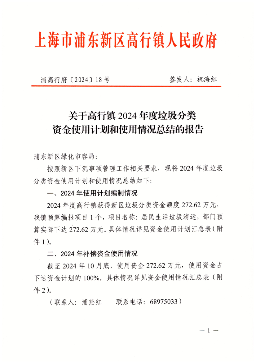 關(guān)于高行鎮(zhèn)2024年度垃圾分類資金使用計(jì)劃和使用情況總結(jié)的報(bào)告