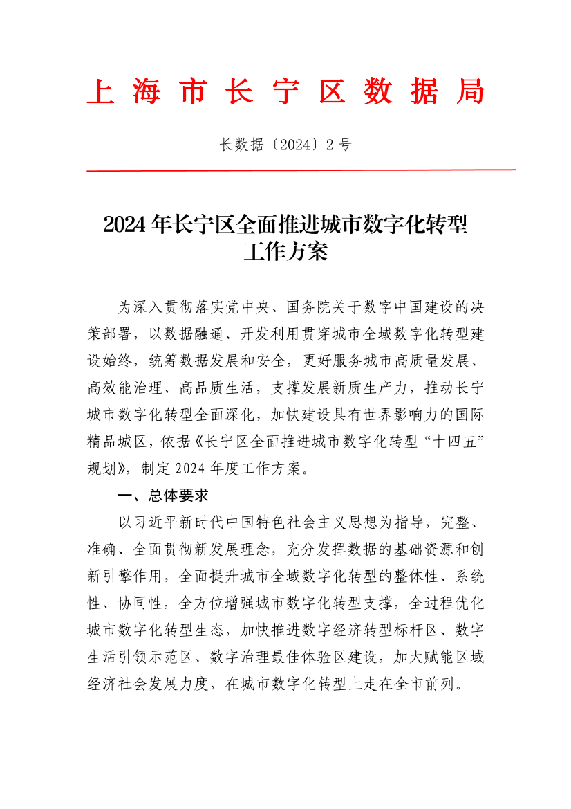 2024年長寧區(qū)全面推進城市數(shù)字化轉(zhuǎn)型工作方案