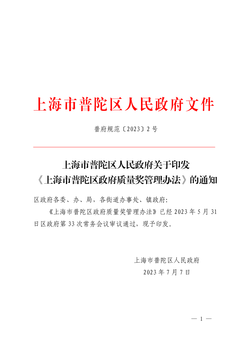 ??《上海市普陀區(qū)政府質(zhì)量獎管理辦法》已經(jīng)2023年5月31日區(qū)政府第33次常務(wù)會議審議通過,現(xiàn)予印發(fā)。