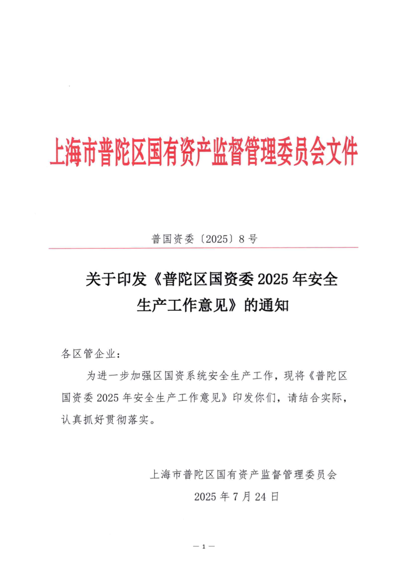 ??為進一步加強區(qū)國資系統(tǒng)安全生產(chǎn)工作,現(xiàn)將《普陀區(qū)國資委2025年安全生產(chǎn)工作意見》印發(fā)你們,請結合實際,認真抓好貫徹落實。