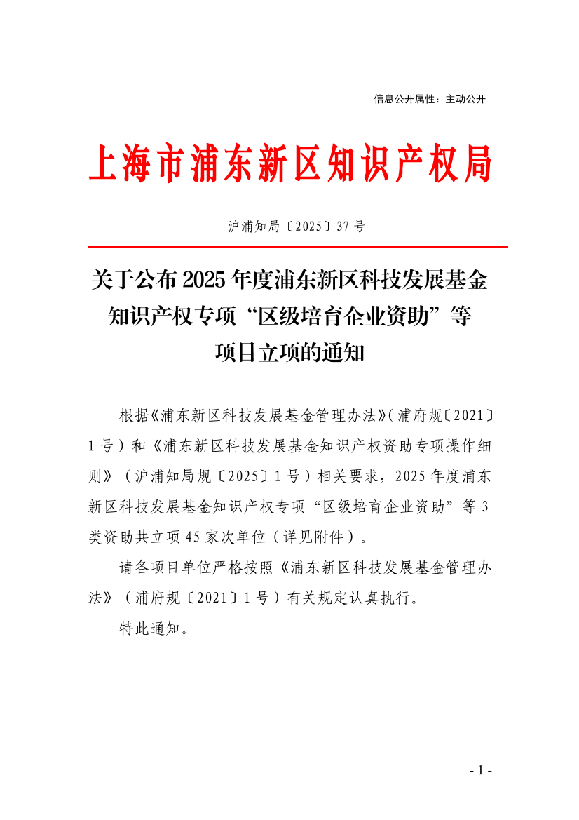 ??根據(jù)《浦東新區(qū)科技發(fā)展基金管理辦法》(浦府規(guī)〔2021〕1號)和《浦東新區(qū)科技發(fā)展基金知識產(chǎn)權(quán)資助專項操作細(xì)則》(滬浦知局規(guī)〔2025〕1號)相關(guān)要求,2025年度浦東新區(qū)科技發(fā)展基金知識產(chǎn)權(quán)專項“區(qū)級培育企業(yè)資助”等3類資助共立項45家次單位(詳見附件)。