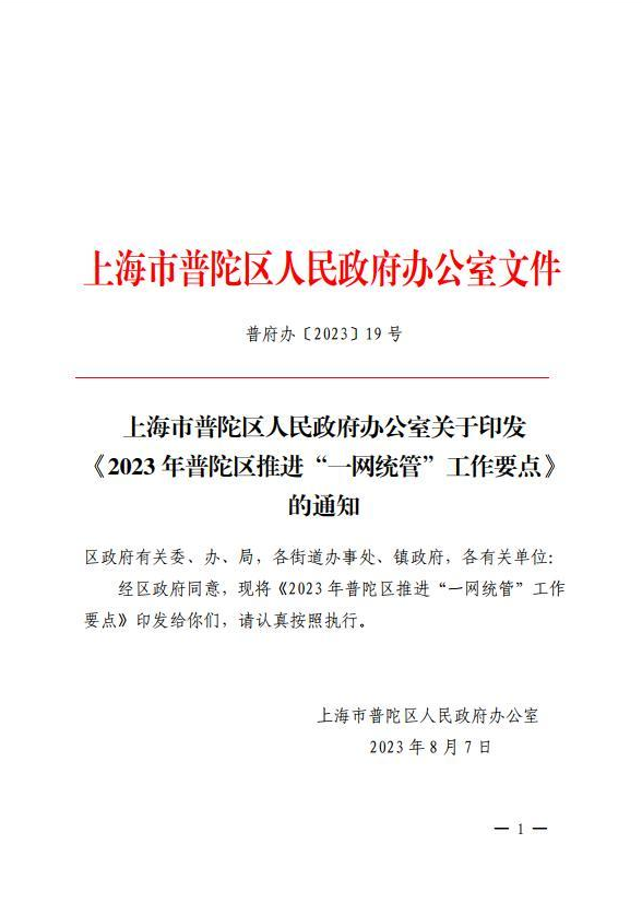 ??經(jīng)區(qū)政府同意,現(xiàn)將《2023年普陀區(qū)推進(jìn)“一網(wǎng)統(tǒng)管”工作要點(diǎn)》印發(fā)給你們,請(qǐng)認(rèn)真按照?qǐng)?zhí)行。