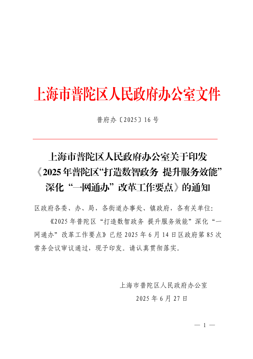 ??《2025年普陀區(qū)“打造數(shù)智政務(wù) 提升服務(wù)效能”深化“一網(wǎng)通辦”改革工作要點(diǎn)》已經(jīng)2025年6月14日區(qū)政府第85次常務(wù)會(huì)議審議通過(guò),現(xiàn)予印發(fā)。請(qǐng)認(rèn)真貫徹落實(shí)。